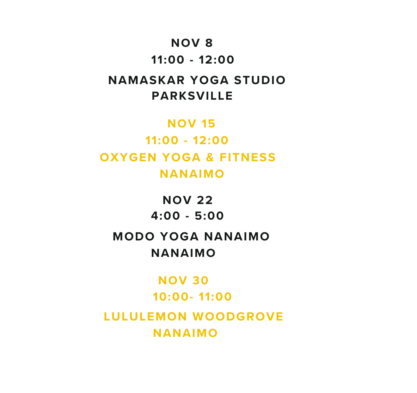 Arrive 5 minutes early. Bring a yoga mat, water bottle and dress in clothing that you can perform light exercise in.